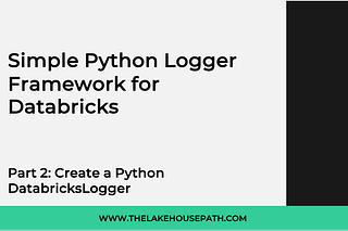Part 1 of 3 of the Simple Python Logger Framework for Databricks series